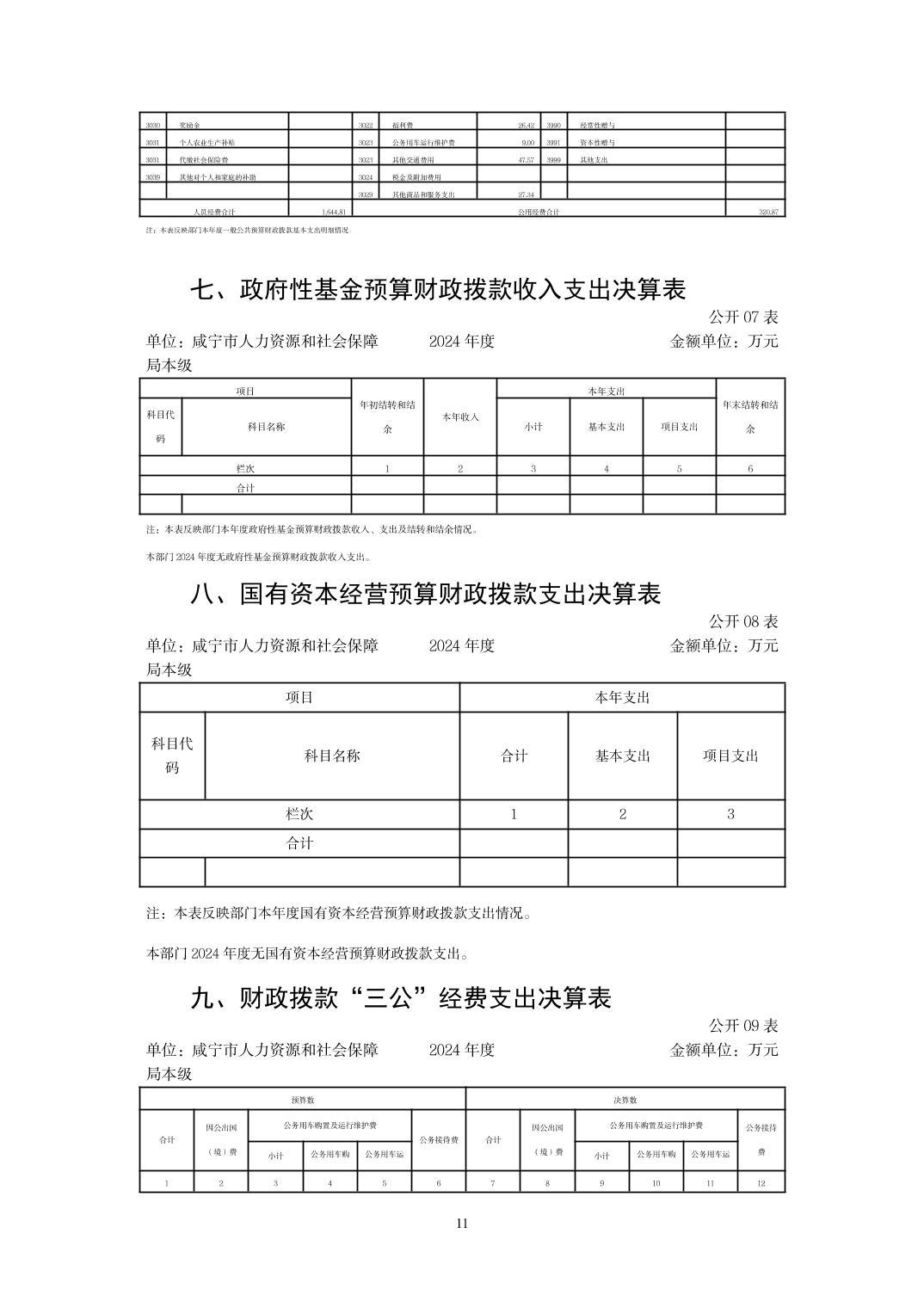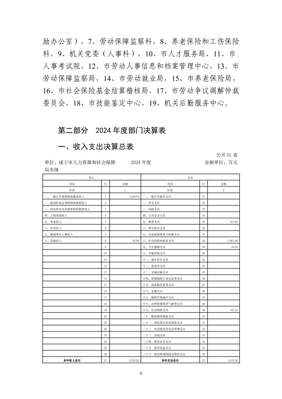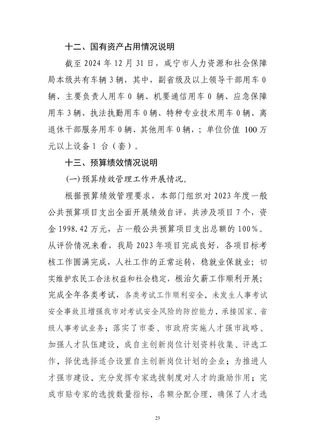 名       称: 咸宁市人力资源和社会保障局本级 2024年度部门决算 发布日期: 2025年09月23日