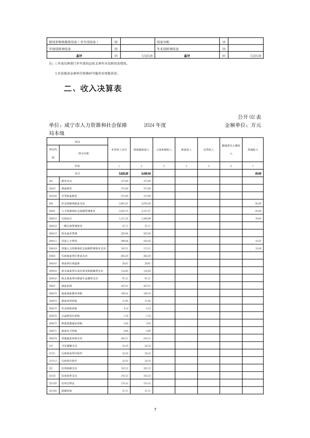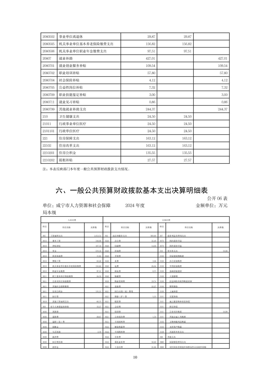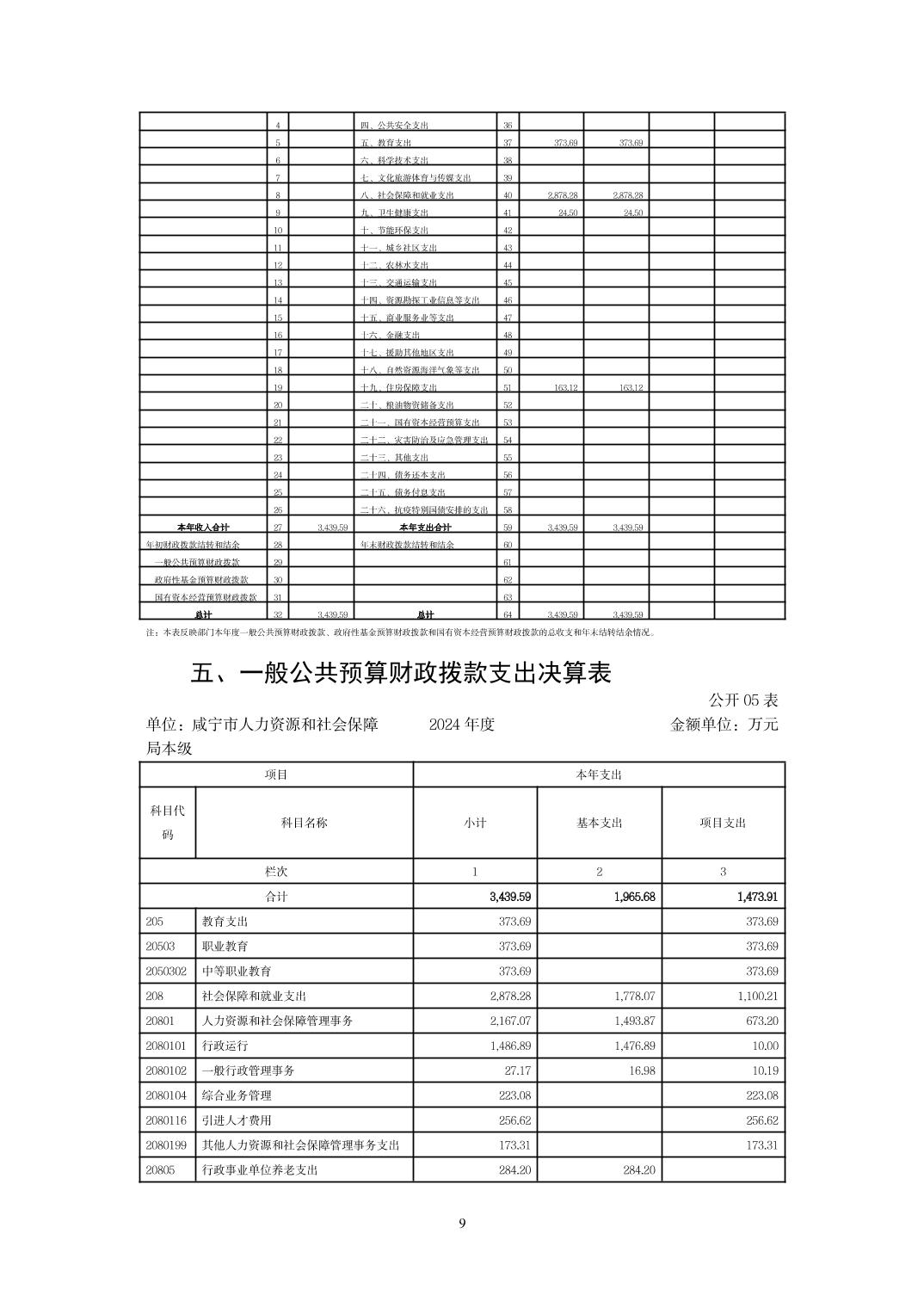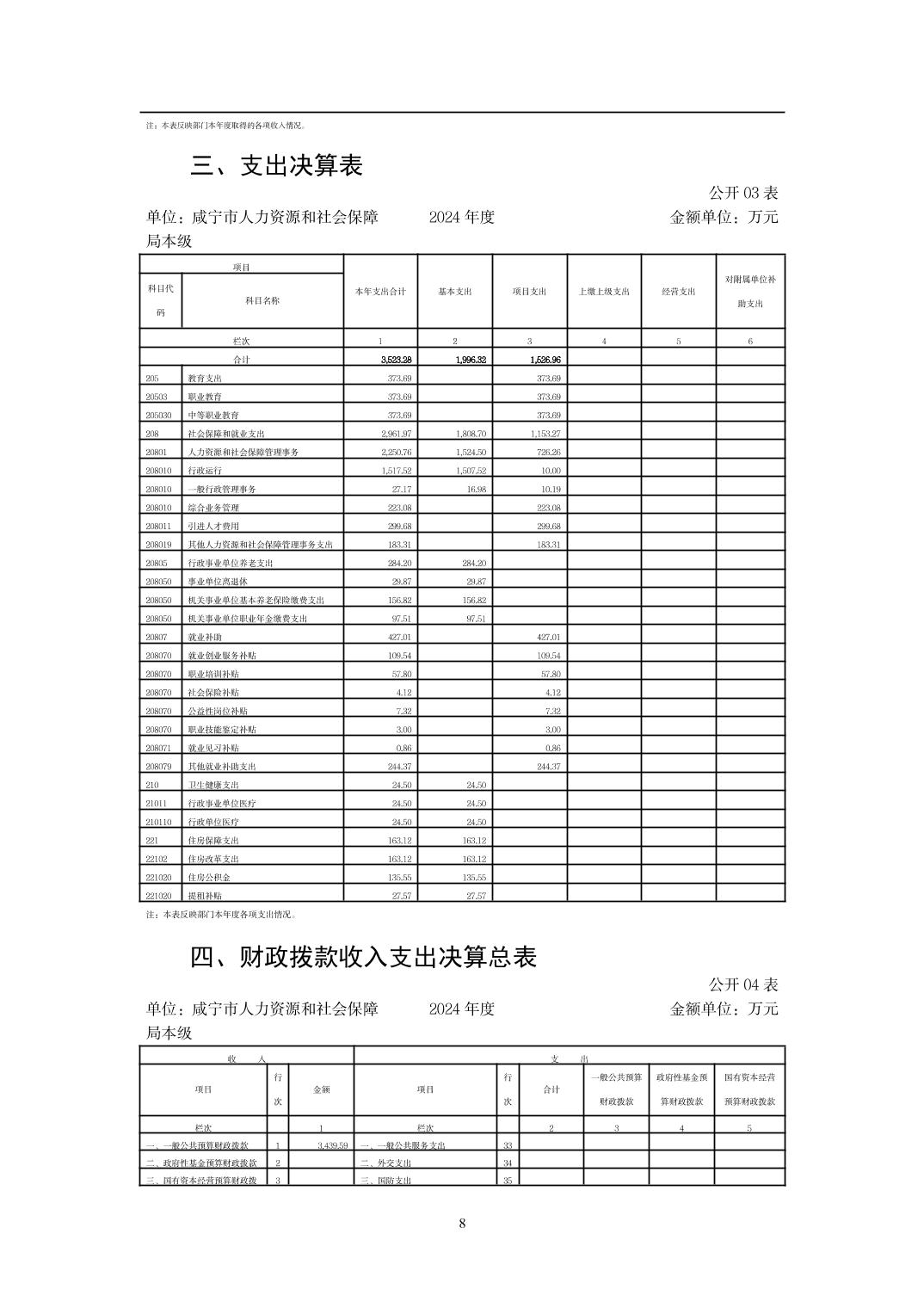 名       称: 咸宁市人力资源和社会保障局本级 2024年度部门决算 发布日期: 2025年09月23日