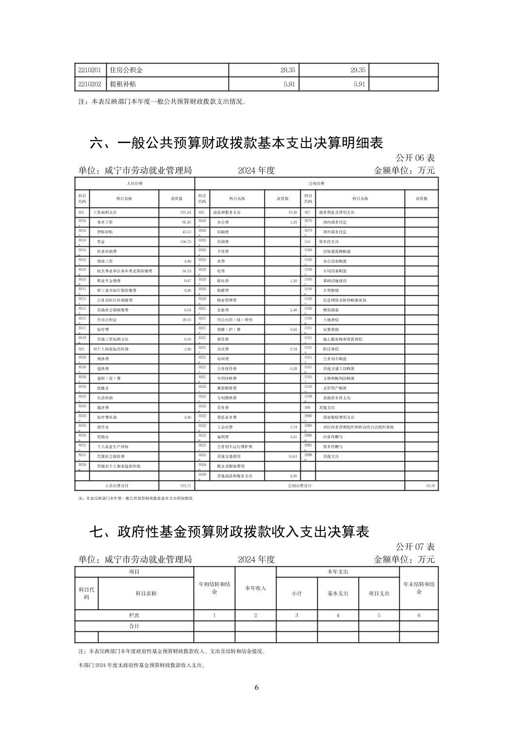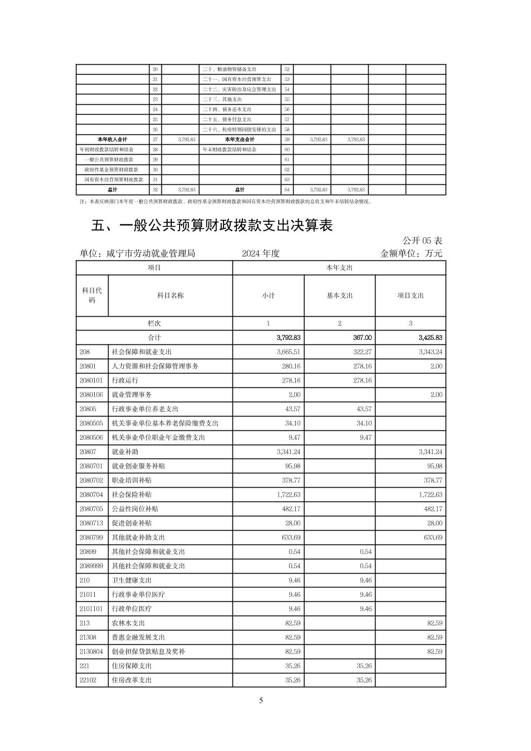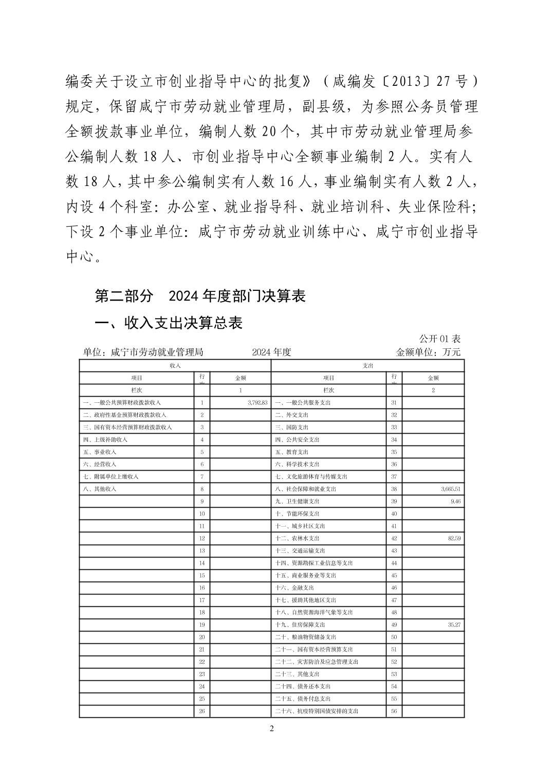 咸宁市劳动就业管理局2024年度部门决算