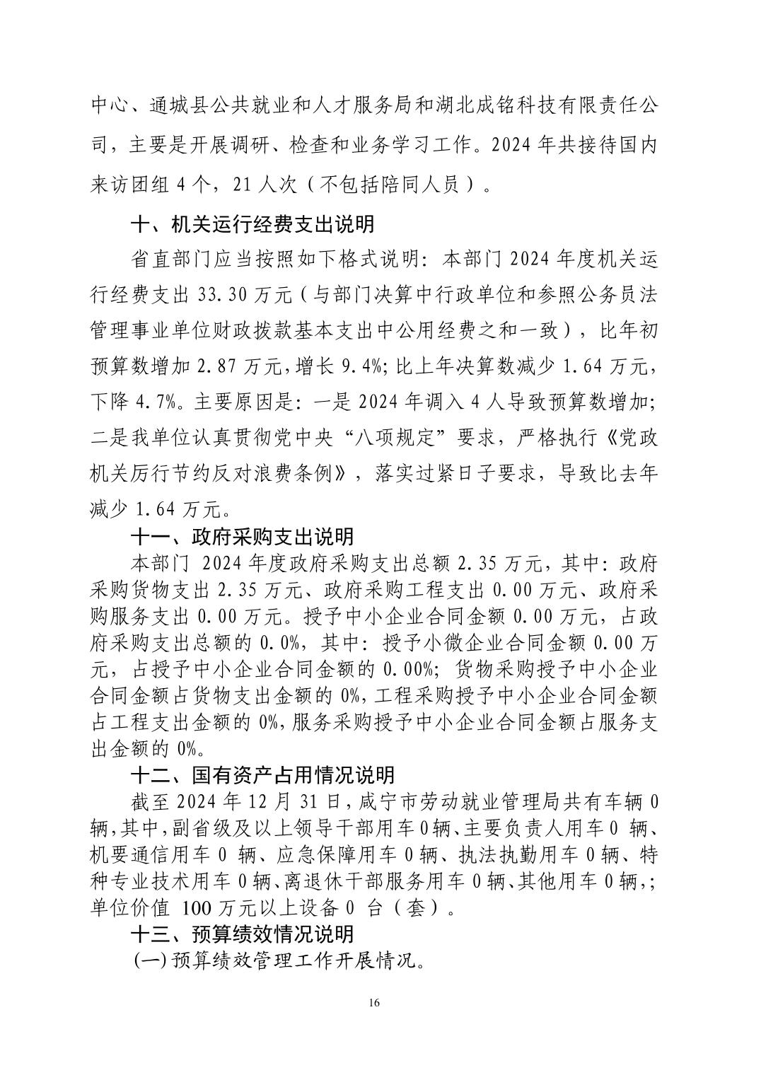 名       称: 咸宁市劳动就业管理局2024年度部门决算 发布日期: 2025年09月24日